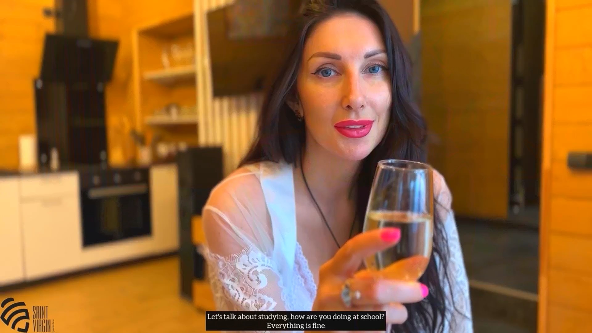 Русская красотка решила за бокалом шампанского обсудить с пасынком его успехи в учебе. Сексуальное белье и большие сиськи провоцировали в парне пошлые мысли, потому обсуждать успеваемость было сложно. Но в дневнике сплошные пятерки, а потому сын заслужил вознаграждение от настойчивой милфы. Негодник сможет не только потискает классную попку, но и оценить насколько хорошо мамаша обслужит его ротиком. Так будет каждый раз, когда парнишка будет доказывать, что он не только прилежный ученик, но и заботливый сын.