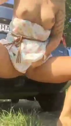 Бывает, что иногда официальный дилер по продаже автомобилей навязывает что-то при покупке машины. Так случилось и с этой обладательницей новенького SEAT - ей в качестве подарка предложили фаркоп. Мало ли яхту купят, или картошку будут на дачу возить. В хозяйстве пригодится, как сказали они. Но на деле же эта торчащая хрень так и висела, ни разу не пригодившись в быту. Но владелица быстро смекнула, как использовать эту штуковину не по прямому назначению, и приехав за город, стала насаживаться на торчащую трубу пиздой.
